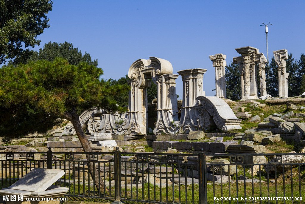 北京圆明园荟萃了中国园林景观、建筑和西洋建筑精华,是清代杰出皇家建筑。1860年,英法联军在抢掠了圆明园内诸多珍贵藏品后将其付之一炬。目前北京圆明园仅存少量断壁残垣。