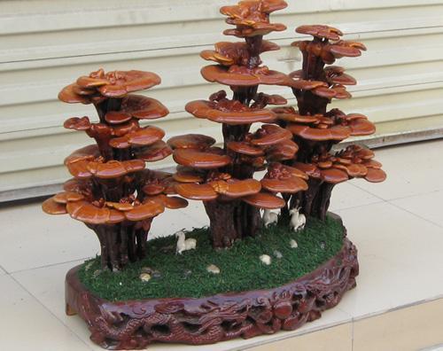 据介绍,近年来,梁国在天津市蓟县穿芳峪镇毛家峪旅游度假村的路口创建了1000平米的灵芝采摘园,并注册了“芝香园”灵芝商标。他在生产繁育灵芝药材的同时,将干燥的灵芝开发成观赏用的灵芝盆景,使冬季干燥的灵芝价格增加了几十倍,最贵的灵芝盆景可卖到近万元。